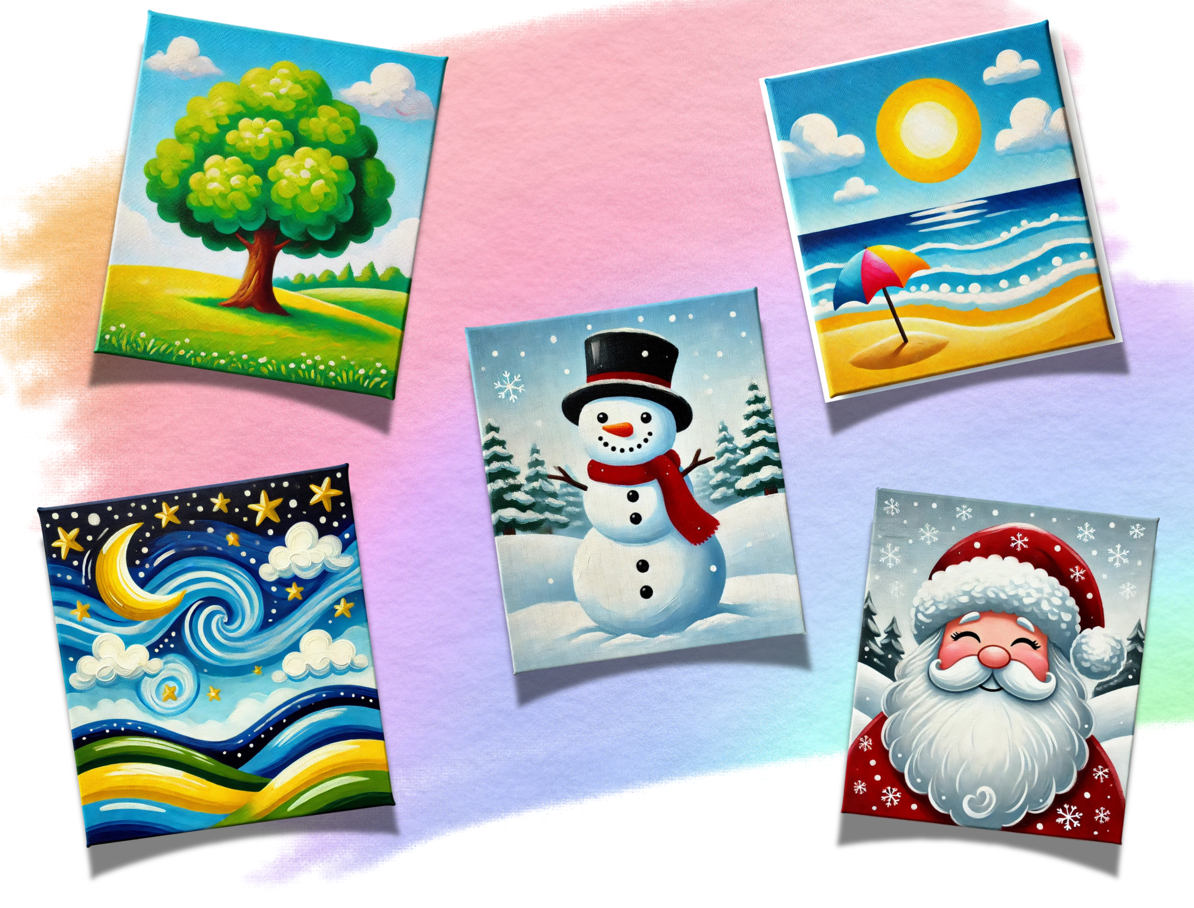 Choose your favorite art kit. Each kit includes all of the art supplies you need, and access to a video tutorial.